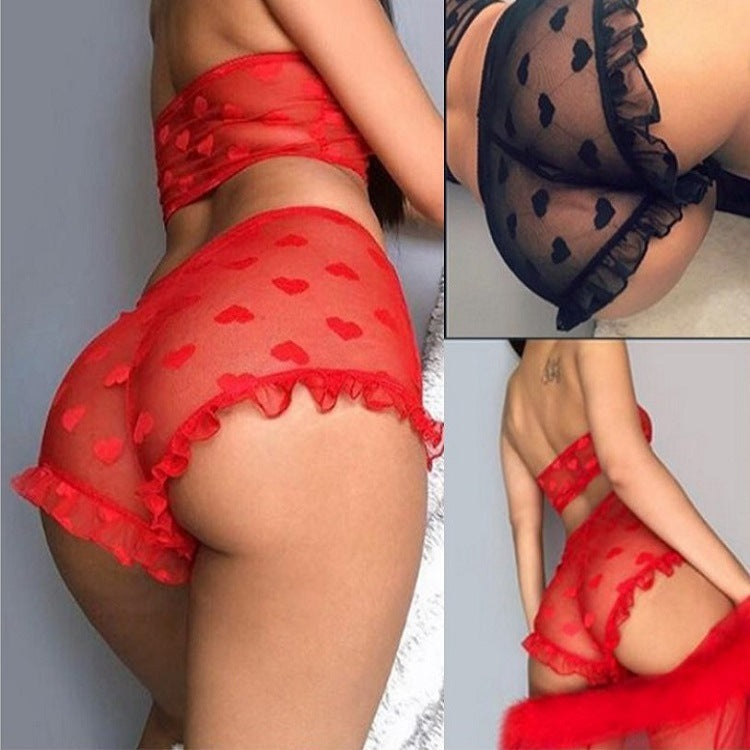 Fabric name: Lace Main fabric composition: polyester fiber (polyester) The content of the main fabric ingredient: 60 (%) Crotch lining composition: polyester fiber (polyester) The content of the crotch lining: 60 (%) Underwear style: boxer shorts Applicable gender: female Style details: perspective Role playing: cute girl type Color: white. red. black Size: S. M. L. XL
